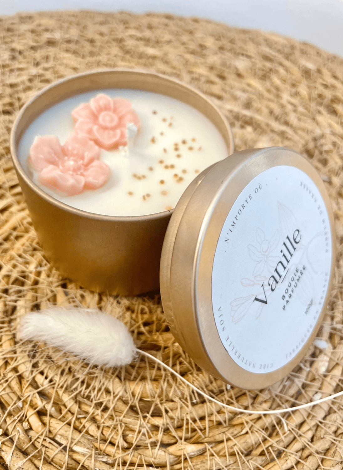 Nos créations sont fabriquées avec soin à partir de cire 100% naturelle et de fragrances exquises, notamment de Grasse, reconnues pour leur raffinement et leur qualité exceptionnelle.