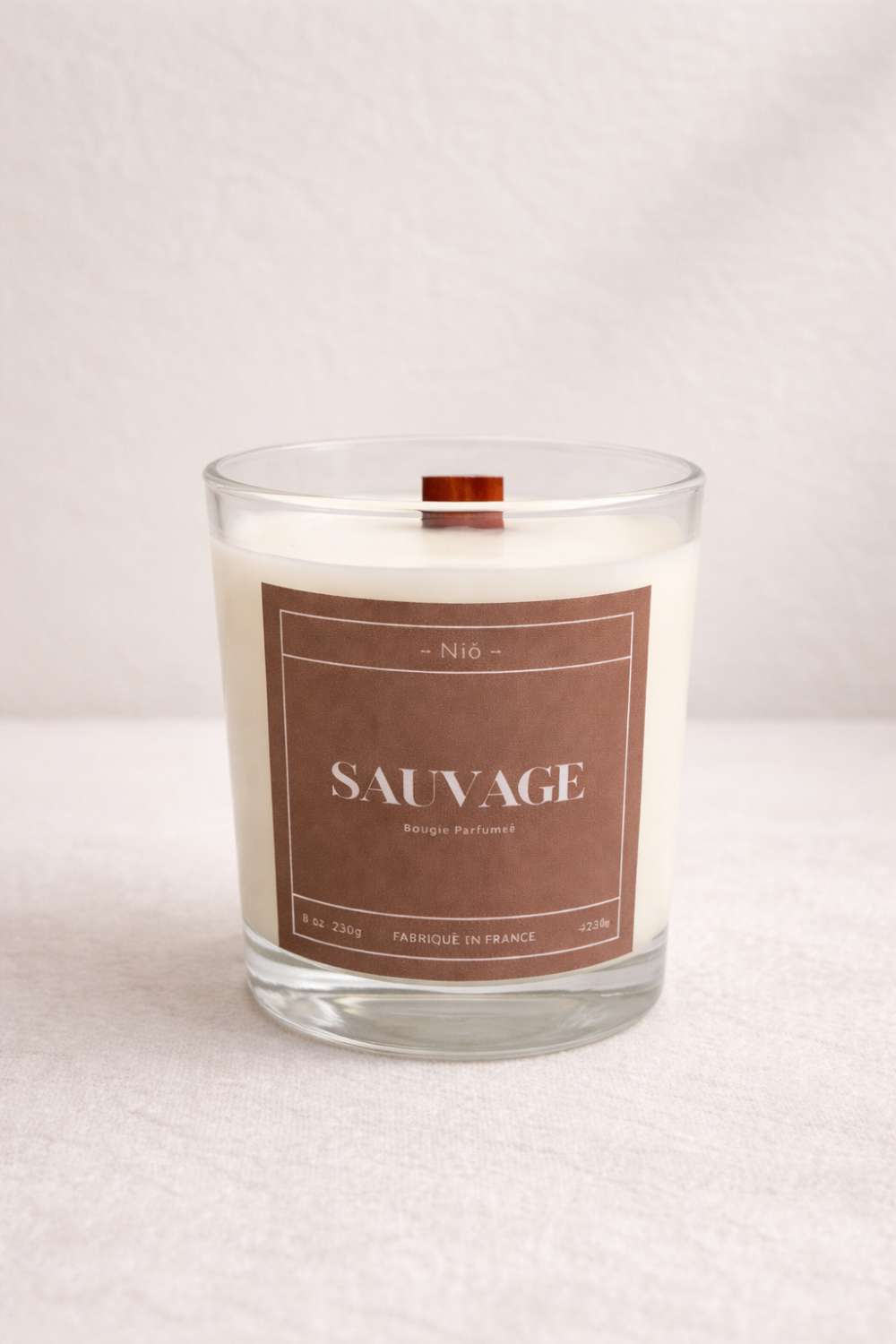 Découvrez la bougie Sauvage, une fragrance masculine puissante aux notes boisées et aromatiques. Conçue pour ceux qui recherchent une ambiance virile, raffinée et intensément charismatique.