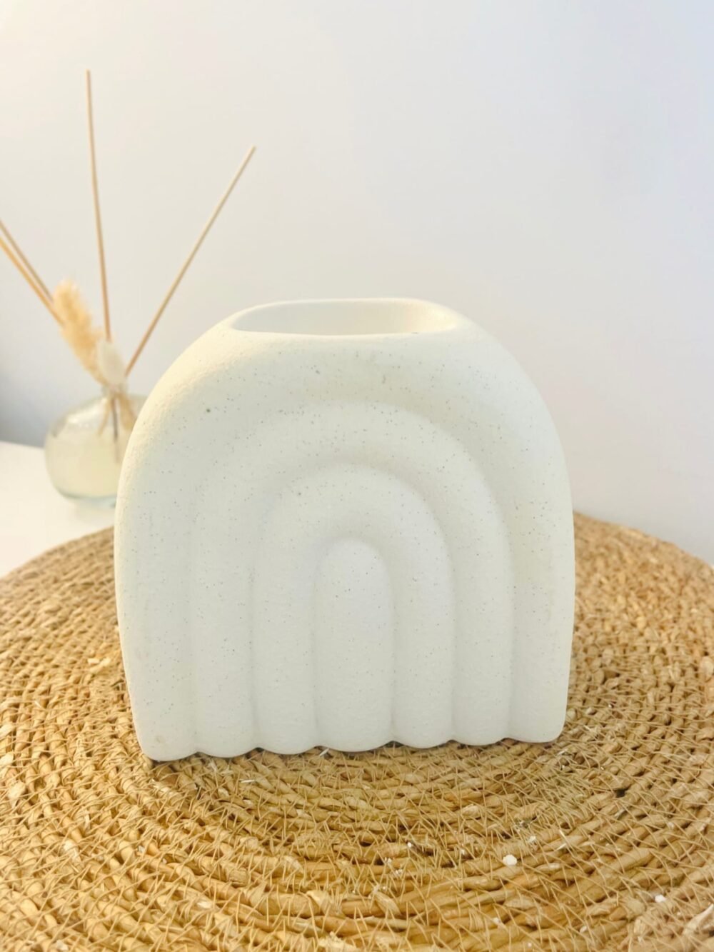 Apportez une note douce et lumineuse à votre intérieur avec Kaël, notre brûle-parfum en dolomite à la silhouette arquée inspirée de l’arc-en-ciel. Une pièce décorative minimaliste et tendance.