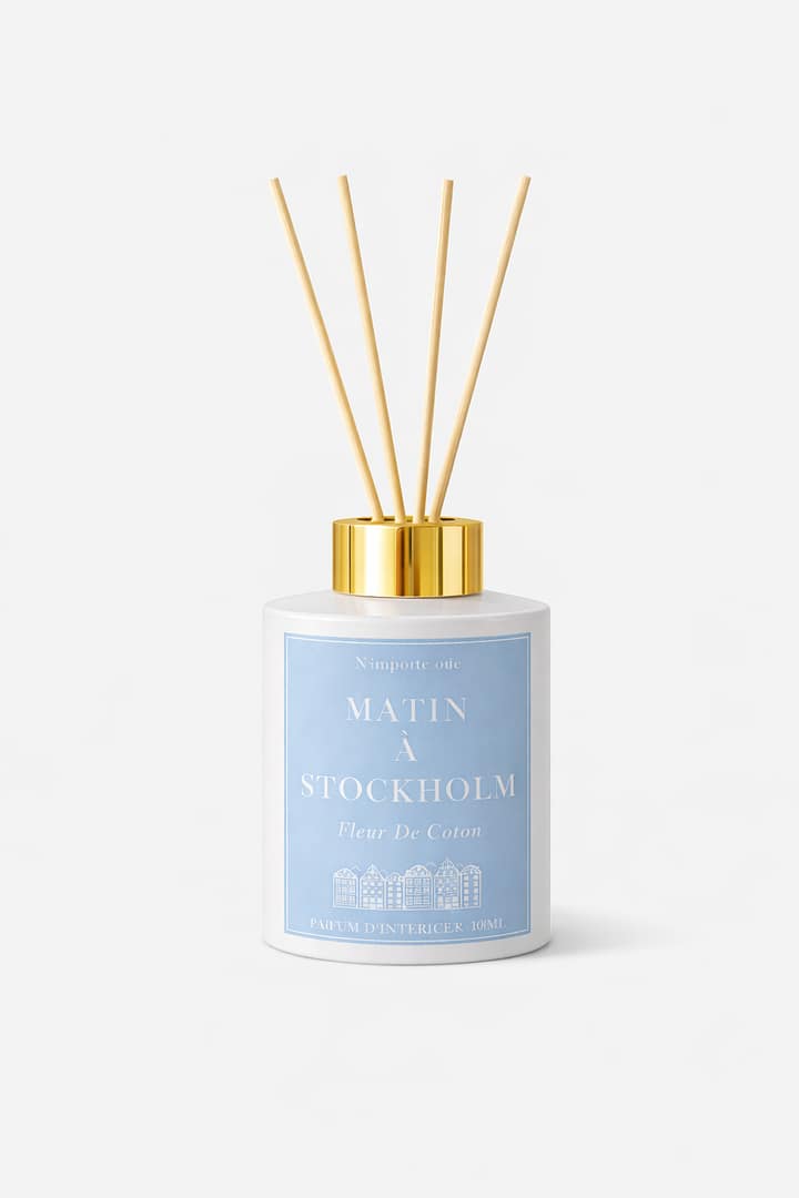 Le flacon blanc minimaliste, sublimé par un bouchon doré, s’intègre naturellement dans tout type d’intérieur. Son design élégant et discret fait de ce diffuseur à bâtonnets un véritable objet décoratif, fidèle à l’esthétique scandinave et à l’esprit nordique que nous avons voulu transmettre.